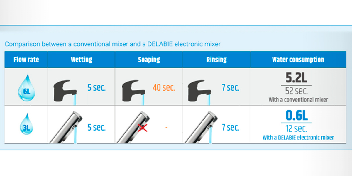 Delabien hanat ja sekoittajat ovat suunniteltu jatkuvaan kuluttavaan käyttöön hiilijalanjälkeä vähentämällä. Ne ovat hygieenisiä, luotettavia ja energiatehokkaita.