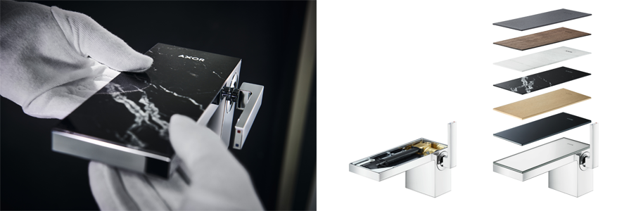 Selkeä, lineaarinen muotoilu tarjoaa täydellisen alustan hanan yksilölliseen muokkaamiseen. AXOR MyEdition -hanat koostuvat kahdesta erikseen valittavasta osasta: rungosta ja pintalevystä. Standardimalleissa runko on kiiltävää kromia ja pintalevy peililasia tai mustaa lasia. Kun vaaditaan todella yksilöllistä ratkaisua, voidaan osien pintavärit ja materiaalit valita vapaasti. Pintalevyn materiaaliksi voidaan valita esimerkiksi erikoisvärinen metalli, marmori, puu tai nahka; rungon väriksi esimerkiksi musta kromi, pronssi tai punakulta, kiiltävänä tai mattana.