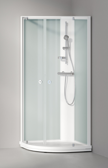 Bric-malleissa 4 ja 5 on pivot-ovet, joiden ansiosta oviaukko on poikkeuksellisen suuri, mikä luo suihkukaapille ylellisemmän tunnun. Valitse Clear-lasi tai Streak-lasi, jonka keskellä on kaksi leveää huurrettua osiota. Takaseinät ovat huurrettua lasia. Mukana vakiona pyöreä Circle-vedin. Saatavilla koot 910x910 ja 1010x1010 mm