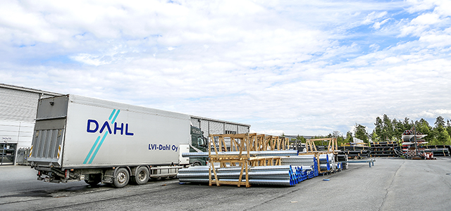 Työmaiden sujuvuutta helpottaa Dahlin paikalliset palvelupisteet sekä joustavat ja luotettavat kuljetukset suoraan työmaille. Jokaisen urakoitsijan kannalta pahin tilanne on se, että asentaja on työmaalla mutta tarvikkeet eivät. Tähän haasteeseen on ratkaisuna Dahlin laaja paikallinen varastovalikoima ja oma hyvä kuljetuspalvelu, jonka kanssa toimituksista voidaan sopia tarpeen mukaan.
