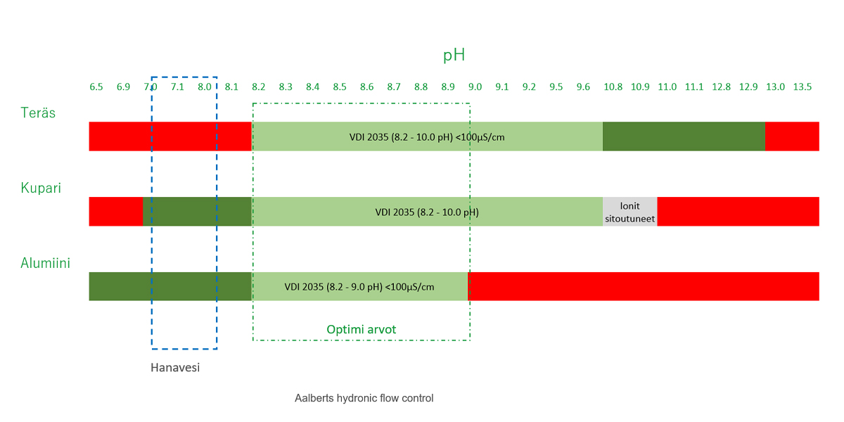 VDI 2035 antaa lisäksi viitearvot myös veden kovuudelle (dH), sähkönjohtavuudelle (μS/cm) ja pH-arvolle.