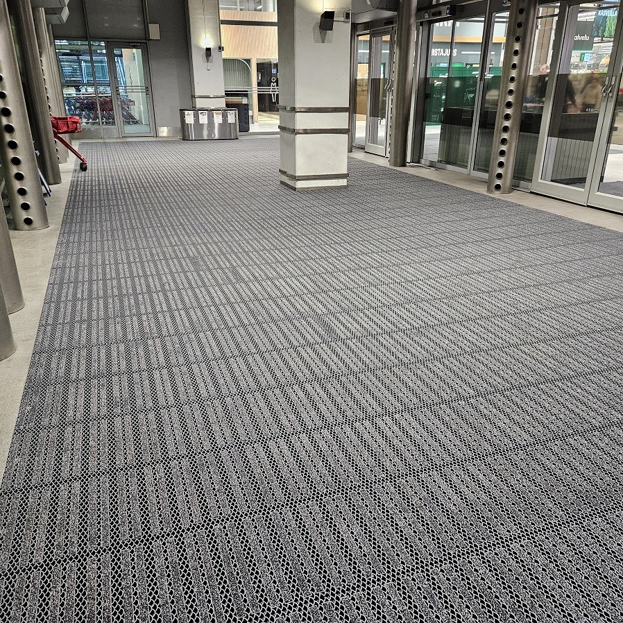 Kauppakeskuksen uudistuneen ilmeen myötä tuulikaappimatostakin valittiin uudistunut versio eli Jaguar Tekstiili tuulikaappimatto, jossa kuivaavat tekstiilikaistaleet tehostavat lian keräämistä. Toki matto on myös erittäin tyylikkään näköinen sisäänkäynnissä.