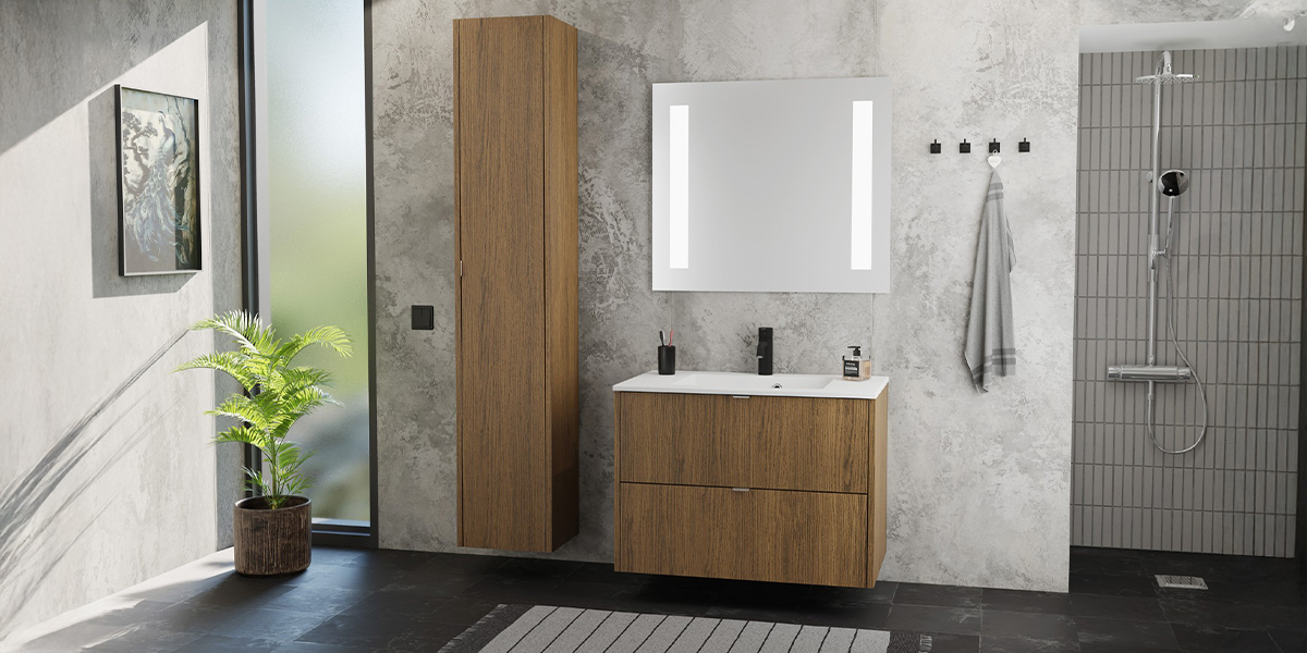 Mallisto on laaja: saatavilla on eri kokoisia ja erilaisiin käyttötarkoituksiin sopivia kalusteita, vetolaatikoilla tai ovilla – juuri tarpeen mukaan. Lisäksi kaikkiin kokonaisuuksiin löytyy yhteensopivat korkeat kaapit, joilla viimeistelet yhtenäisen ja toimivan kylpyhuoneen.