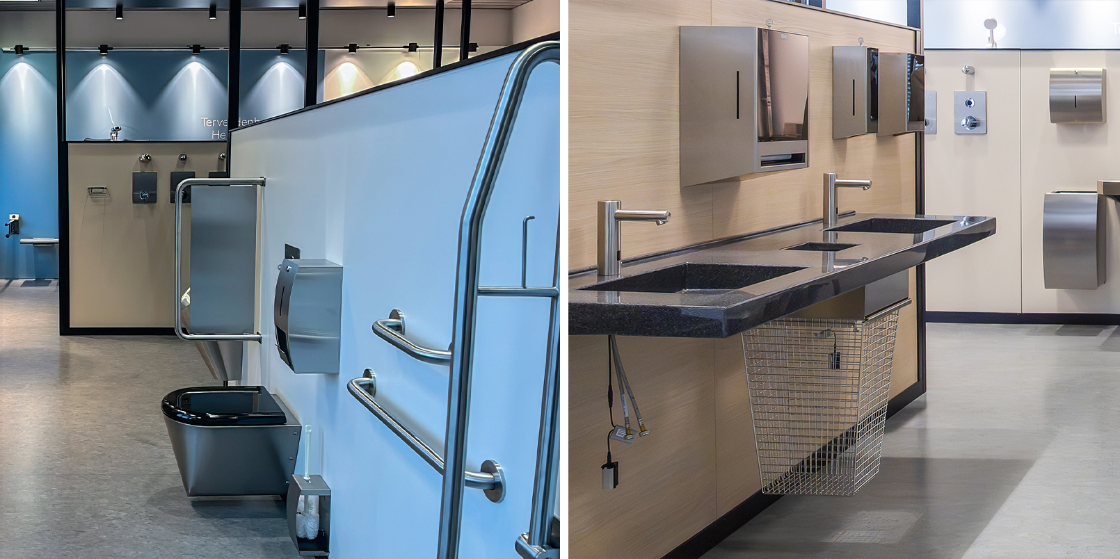 Valitsimme 70 m2 näyttelytilaamme tuotteita mahdollisimman kattavasti erilaisiin kohteisiin.
