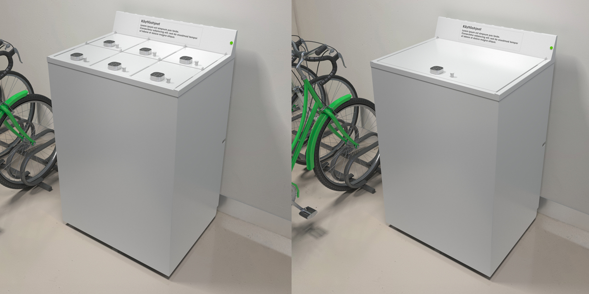 Tuotteemme on suunniteltu käytännön tarpeisiin. Ne toimivat tavallisella pistorasialla eivätkä vaadi erillisiä asennuksia. Sammutukseen käytettävä vesitankki on kaapissa itsessään, eikä tarvitse erillistä vesipistettä. Mallivaihtoehtoina on useamman lokeron ratkaisu esimerkiksi pyörävarastoihin sekä yksiluukkuinen malli yhteiskäyttöön. Kaapit voidaan brändätä asiakkaan ilmeen mukaisesti.
