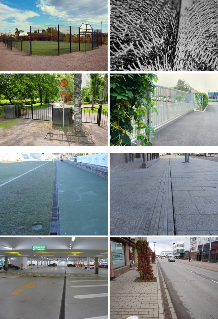 Käyttökohteita ovat päiväkodit, leikkipaikat, puistot, teollisuuskiinteistöt, asuinkiinteistöt, rata-alueet; ylipäänsä kaikki paikat, missä tarvitaan aitaa ja portteja. Meiltä löytyy joka paikkaan tuote! Meillä on myös ratkaisut työmaiden suojaukseen ja kulunvalvontaan.