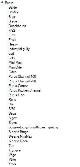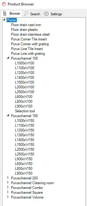 Tuoteselaimeen on tuotu uusi, looginen kategorisointijärjestelmä, jonka ansiosta valikoiman selaaminen on nyt entistä sujuvampaa. Esimerkiksi lattiakaivot on järjestetty materiaalin mukaan: muovi, valurauta ja ruostumaton teräs. Purus Corner- ja Line-mallit puolestaan on jaoteltu kansivaihtoehtojen mukaan, erikseen laatoitettaville Tile Insert -kansille sekä ruostumattomasta teräksestä valmistetuille ritilöille.