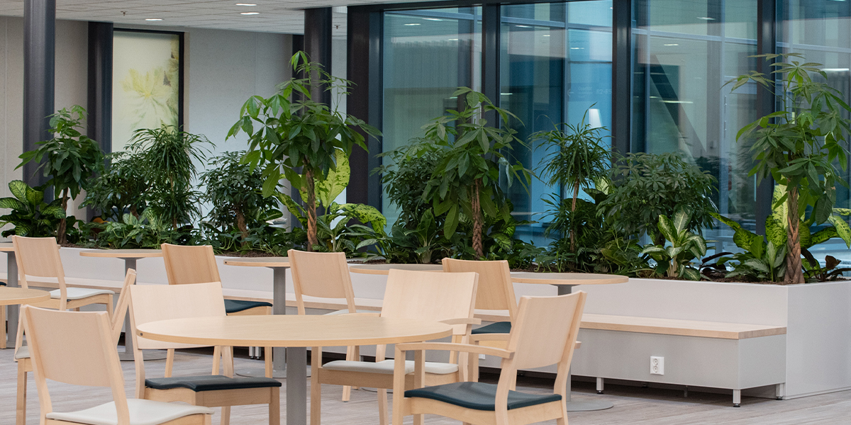 Viherkasvit kaunistavat tilaa, lisäävät hyvinvointia ja tekevät ympäristöstä rauhallisemman parantamalla akustiikkaa. Ne eivät ole vain koristeita, vaan vaikuttavat konkreettisesti siihen, miltä tila kuulostaa ja tuntuu.