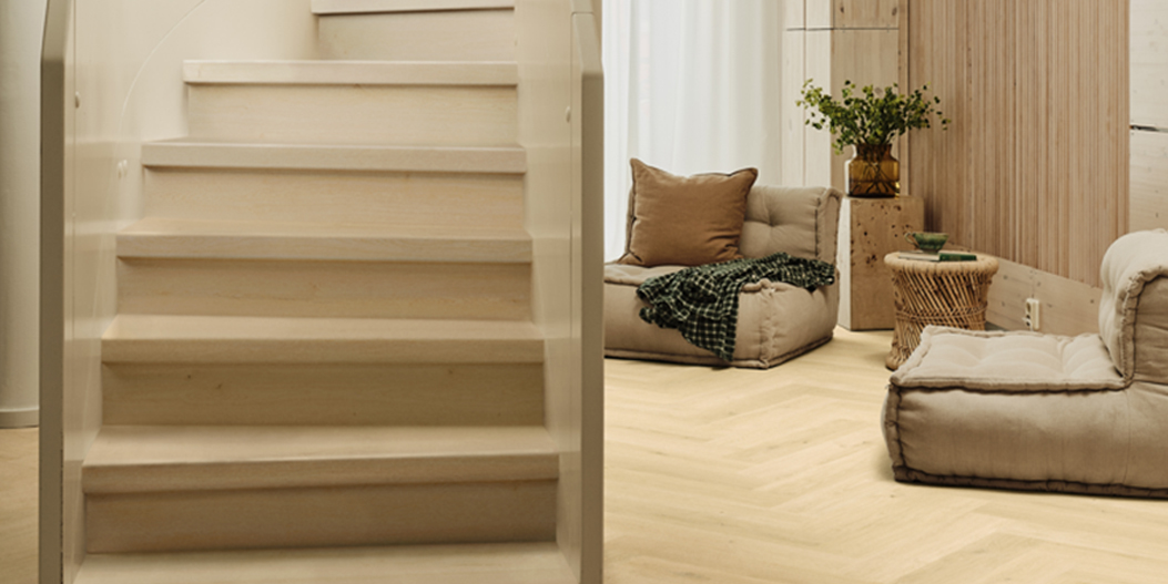 Voimakkaasti harjattu pinta ja erityisen luonnollinen viiste tuovat aidon puun tunnun. Tammi-kuosit, jotka on inspiroitu pohjoismaisen luonnon hillityistä sävyistä, ovat ajattomia ja rauhoittavia.