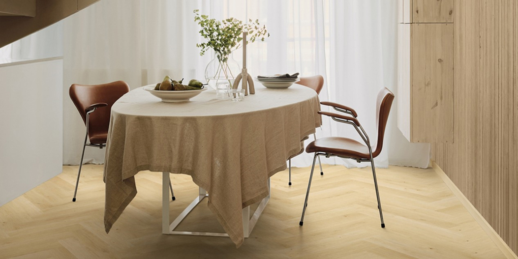 Kungshamn onkin tähän mennessä ainoa 100 % vesitiivis kalanruotolaminaatti markkinoilla. Sen täysin vesitiivis pinta tekee siitä täydellisen valinnan kovan kulutuksen alueille, kuten keittiöihin ja käytäville, joten voit nauttia kalanruotokuvion kauneudesta koko kodissasi huoletta!