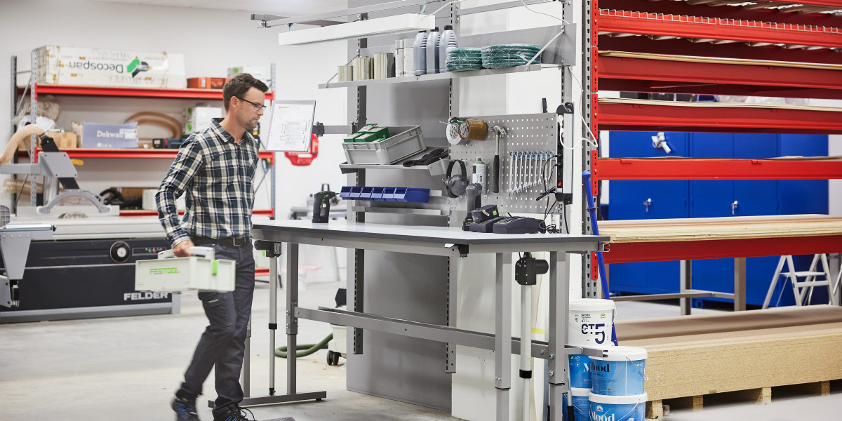 Kun kaikki työvälineet ovat helposti saatavilla ja työpiste tukee työnkulun logiikkaa, työnteko nopeutuu ja ergonomia paranee. Varusteltavuus myös mahdollistaa työpisteen muokkaamisen tulevien tarpeiden mukaan – esimerkiksi kun tehtävät tai työntekijät vaihtuvat.