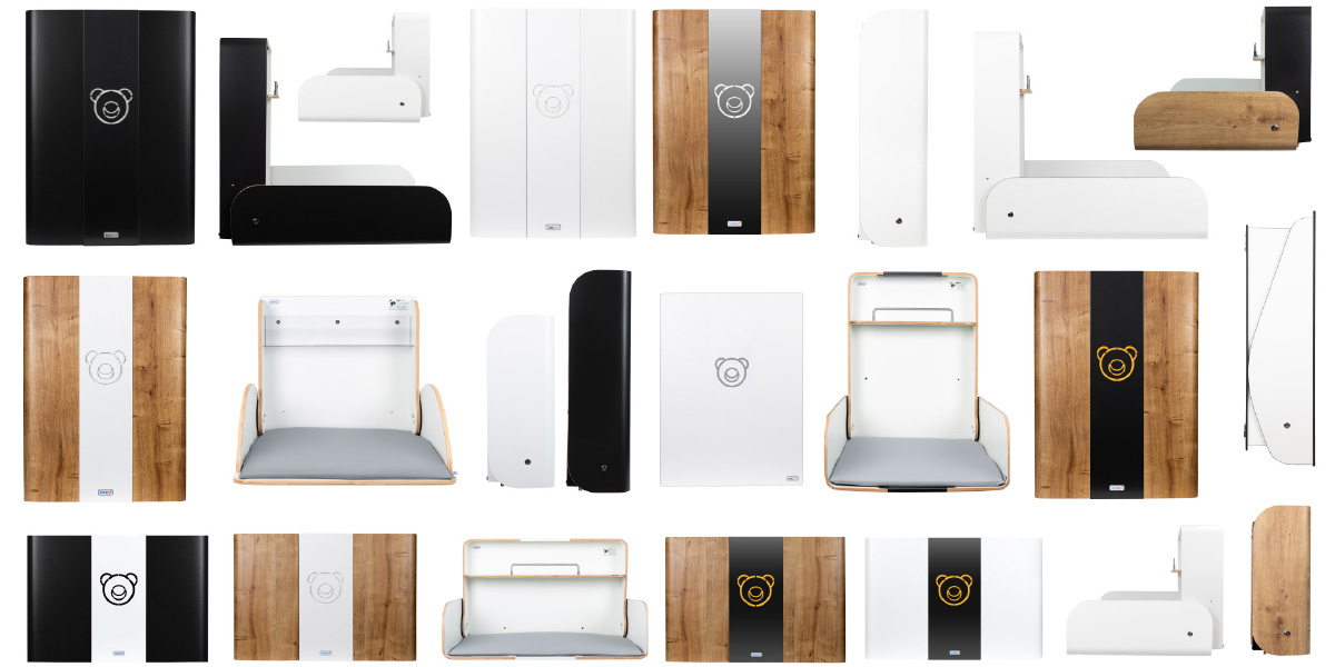 Seinäkiinnitteiset, kokoontaittuvat Timkid-lastenhoitopöydät soveltuvat julkisiin saniteettitiloihin: kauppakeskuksiin, ravintoloihin, hotelleihin ja terveydenhuollon tiloihin. Valikoimasta löytyy vaihtoehto niin pienempään kuin suurempaan lastenhoitotilaan.