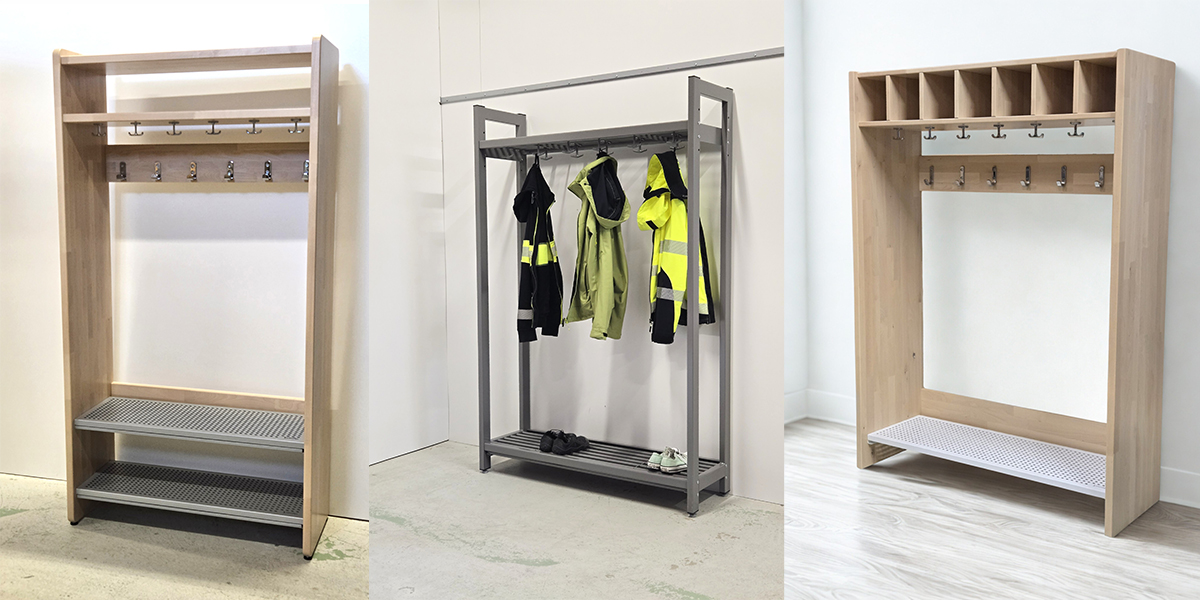 Kaikki naulakkokalusteemme valmistetaan Suomessa tilauksesta. Laaja räätälöitävyys mahdollistaa ratkaisujen sovittamisen tarkasti kohteeseen.