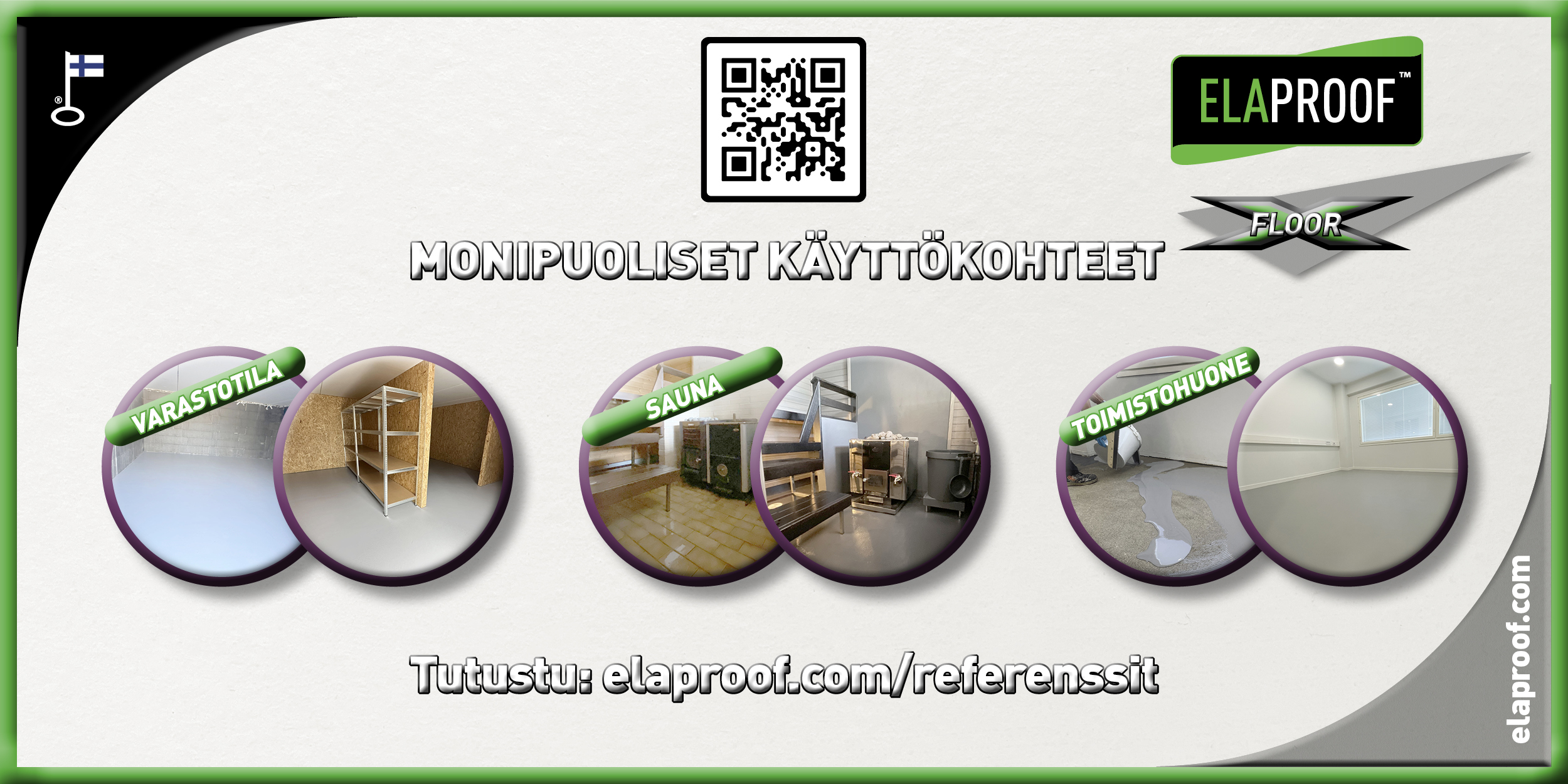 Nyt esittelemme sinulle ainutlaatuisen kotimaisen lattiapinnoitteen, ElaProof FLOOR X:n. Se on elastinen, vesihöyryä läpäisevä sekä itsesiliävä yksikomponenttinen lattiapinnoite sisäkäyttöön. Turvallinen tuotteemme on isosyanaatti- ja ftalaattivapaa.