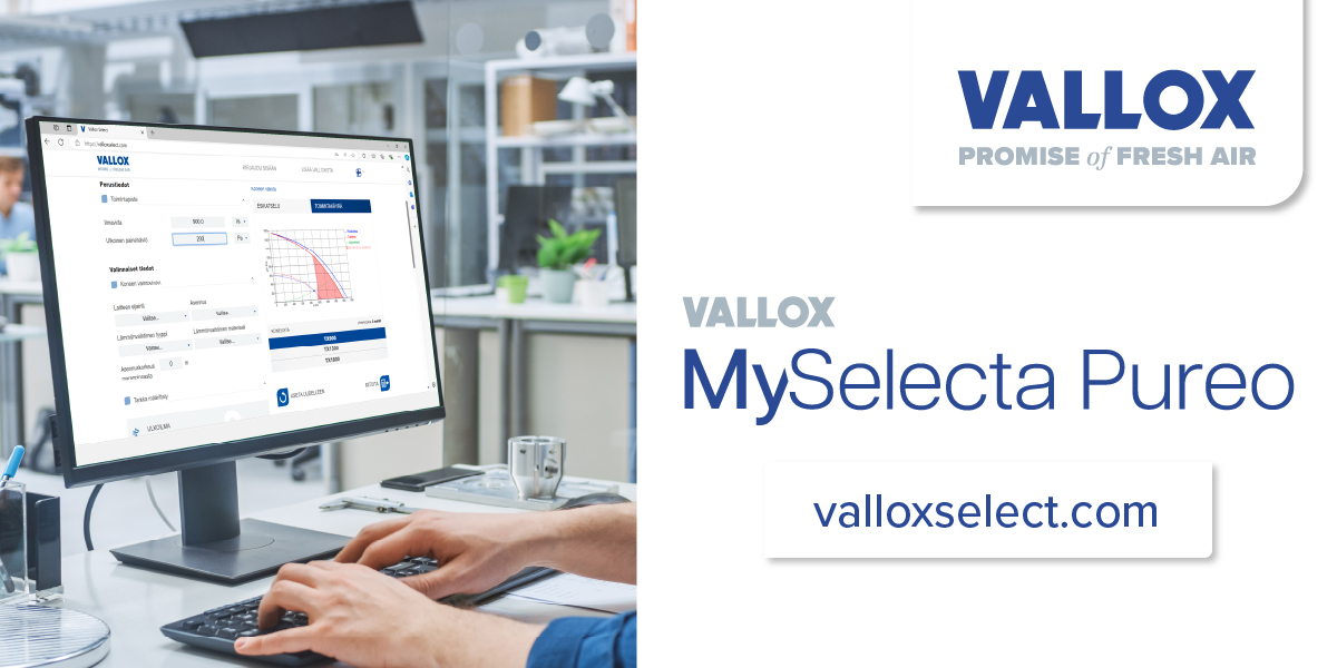 Myös Vallox MySelecta Pureo -mitoitus- ja tuotevalintaohjelma on päivitetty kattamaan kaikki kolme Vallox Pureo -sarjaa. Ohjelmasta löytyvät ilmanvaihtosuunnittelua varten kaikki tarvittavat ajantasaiset kone- ja laskentatiedot. Myös lisävarusteiden konfigurointi onnistuu ohjelmalla vaivattomasti. Selainpohjaisessa ohjelmassa tiedot ovat aina käytettävissä ja ajan tasalla, ja halutessaan tiedot voi viedä eri ohjelmiin ja tallentaa jatkokäyttöä varten.