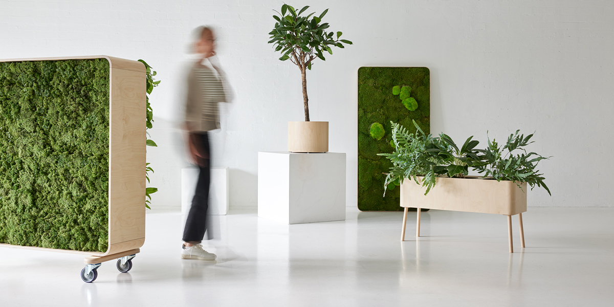 Koivu-tuoteperheeseen kuuluu ruukkuja, tilanjakajia, viherseiniä ja sammaltauluja. Ajattoman muotoilunsa ansiosta Koivu-tuotteet soveltuvat monenlaisiin työympäristöihin. Tuotteet toimivat sekä yksittäin että yhdessä kauniina asetelmina. Sammaltaulujen ja viherseinien avulla säästät lattiatilaa, ruukuilla ja tilanjakajilla luot runsaan vehreää tunnelmaa ja ohjaat kulkua. Kun vihersisustus suunnitellaan tilan käyttäjät huomioiden ja toteutetaan vastuullisesti, viherkasvi voi todella ansaita paikkansa parhaiden työkavereiden joukossa.